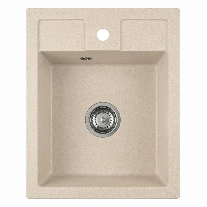 Graniteland Prest Lavandino beige in granito Tapwing con foro per rubinetto da incasso 400x500mm con tappo in acciaio inossidabile 1208971422