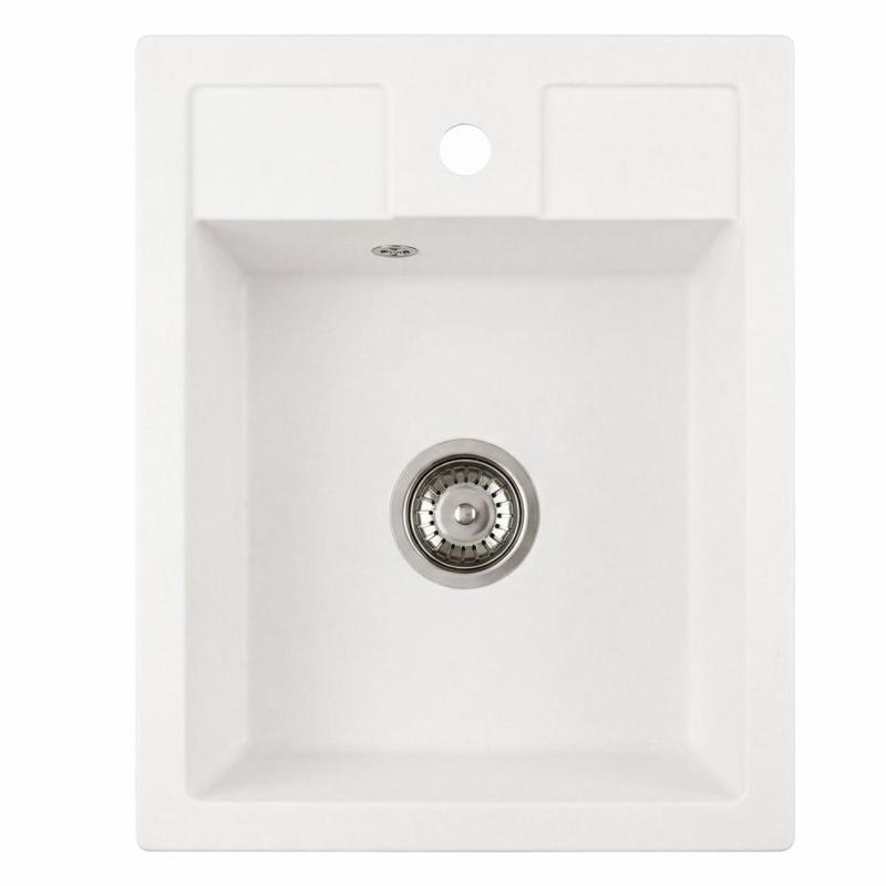 Graniteland Prest Lavabo bianco in granito Tapwing con foro per rubinetto a filo 400x500mm con tappo in acciaio inox 1208971424