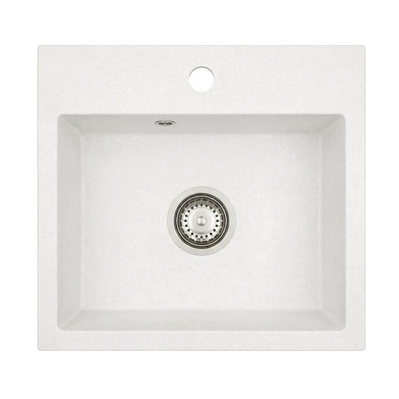 Graniteland Lavandino in granito nero 45x42 cm Bianco Installazione a filo con foro per il rubinetto e tappo in acciaio inossidabile 1208971435