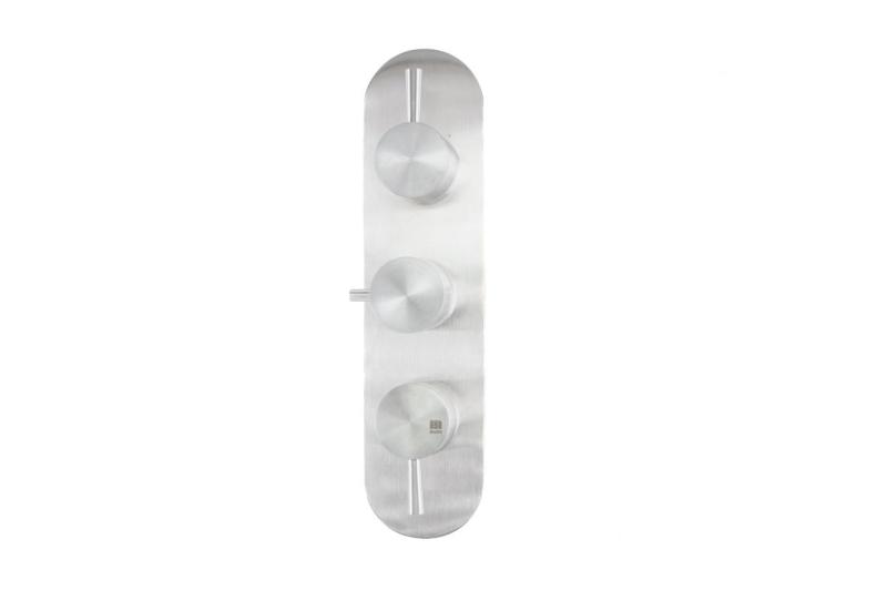 Due rubinetti di arresto separati consentono di controllare in modo indipendente le uscite dell'acqua collegate, come la doccia principale e la doccetta. Ciò offre una flessibilità e un controllo ottimali sul comfort e sul consumo di acqua. Il comando avviene tramite maniglie a leva dal design elegante, mentre le rosette di copertura in dotazione garantiscono una finitura a parete pulita e minimalista.