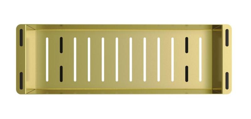 Scoprite il lusso dell'inserto per lavello Pure.Sink Exclusivo in una splendida finitura dorata. Questo cestello per rifiuti di alta qualità, parte della serie Exclusivo, unisce funzionalità e stile nella vostra cucina.